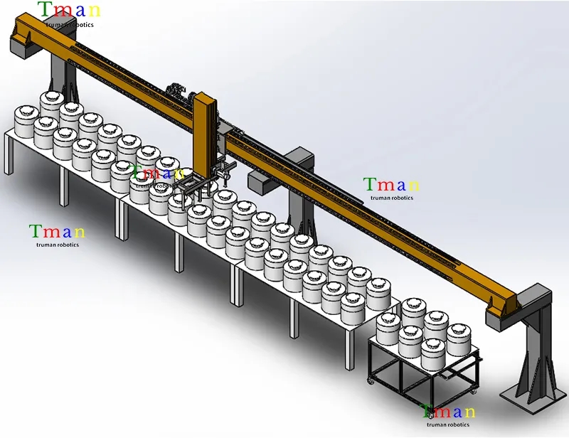 5. 待冷却工位堆满后桁架机械手停止抓取动作,声光报警,提醒人员操作。