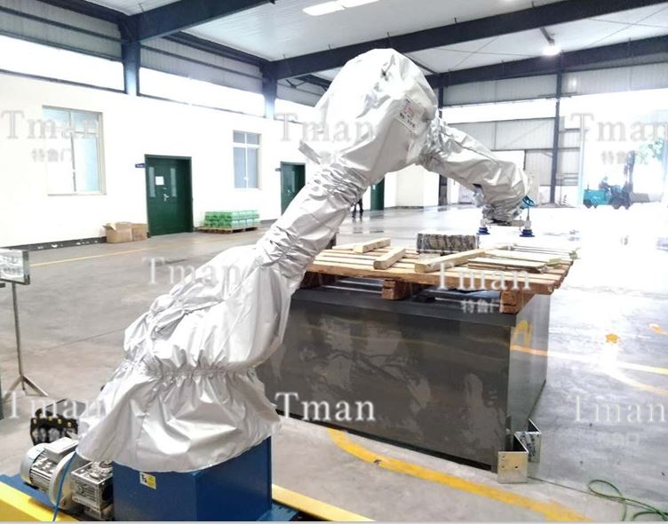 喷涂机器人代替人力操作,可提高喷涂质量和材料的使用率,但是长期皂搓喷涂材料中的各类化学成份也将侵害机器人的手臂。特别是油漆泵,喷涂机器人在工作过程中,机器人本体不可避免地处于油漆喷雾易爆环境中,安装喷涂机器人防护服使机器人隔离静电、粉尘、易燃物的措施异常重要。