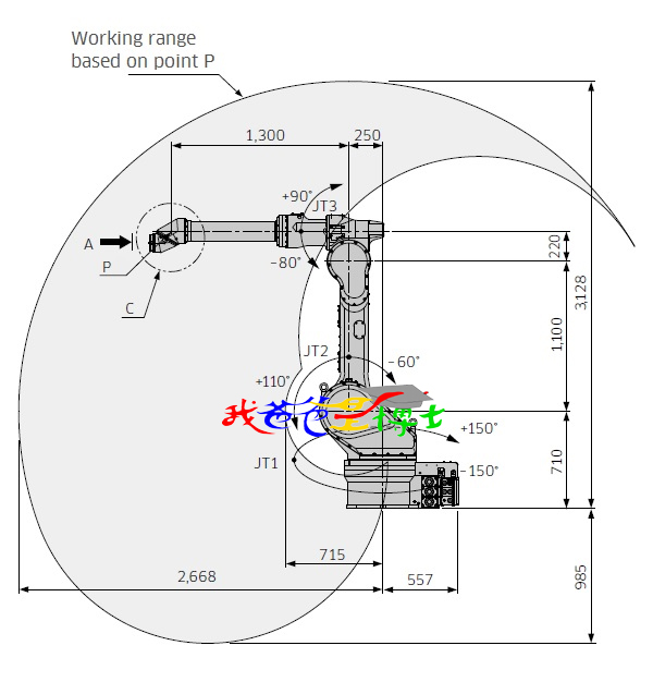 川崎 KF264 负载 12kg 工作区域 2668mm